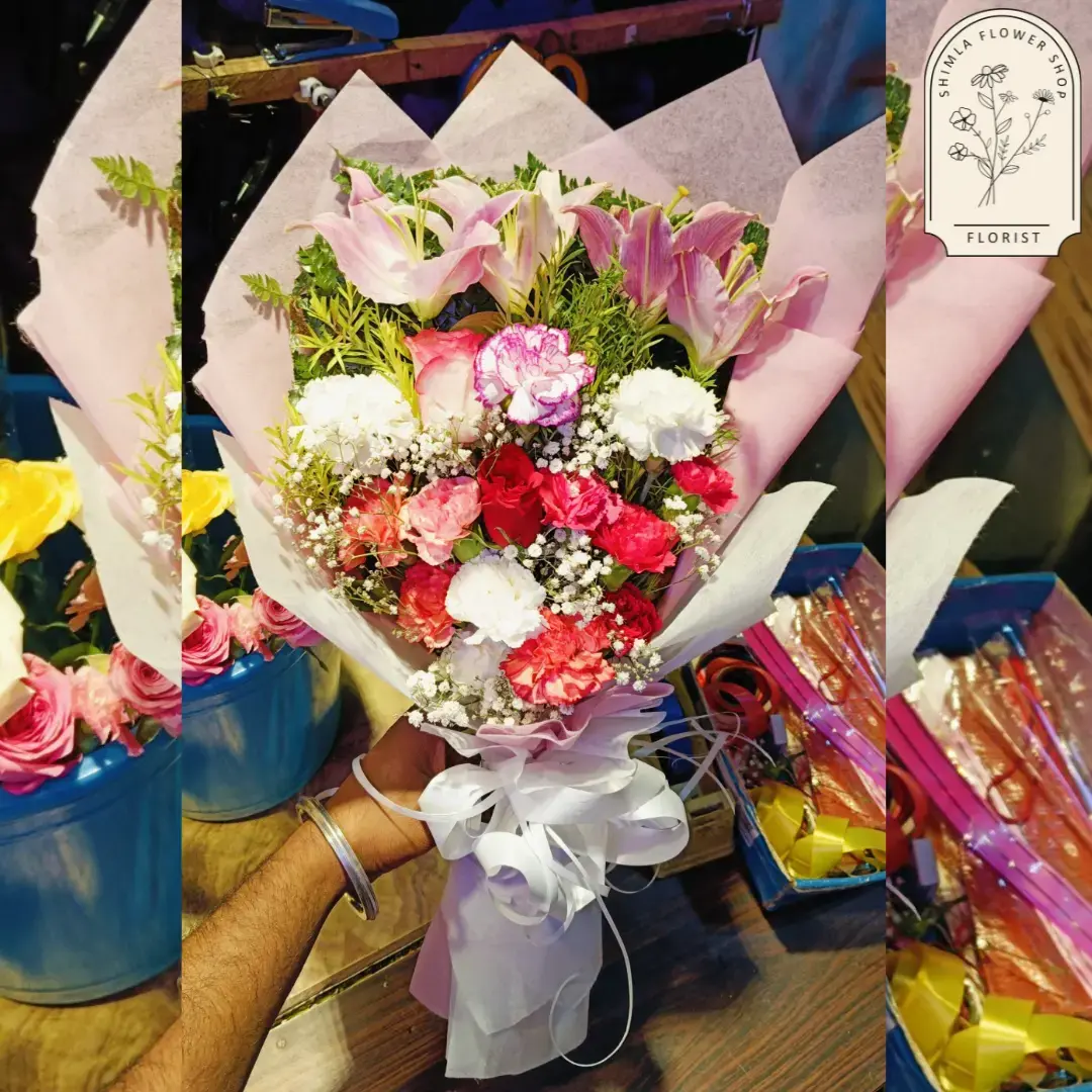 Colour of Flowers: Rose 2, Carnation 13, Lily 1